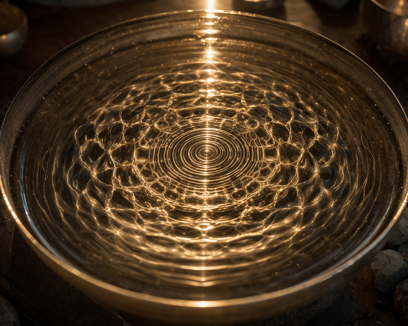 Sound is vibration. At its most fundamental level, sound arises through movement — waves travelling through air, water, and the body. These vibrations can be perceived as tone and rhythm, but they also have a physical effect on the structures they pass through. Cymatics, the study of visible sound vibration, offers a clear way to observe this. When sound frequencies are transmitted through a surface such as a metal plate or water, they form distinct geometric patterns. As the frequency changes, so too do these patterns — demonstrating that vibration can organise matter into form. These patterns often resemble forms found in nature, sometimes referred to as geometric or ordered structures. While interpretations may vary, what can be directly observed is that sound has the capacity to influence and organise physical material.